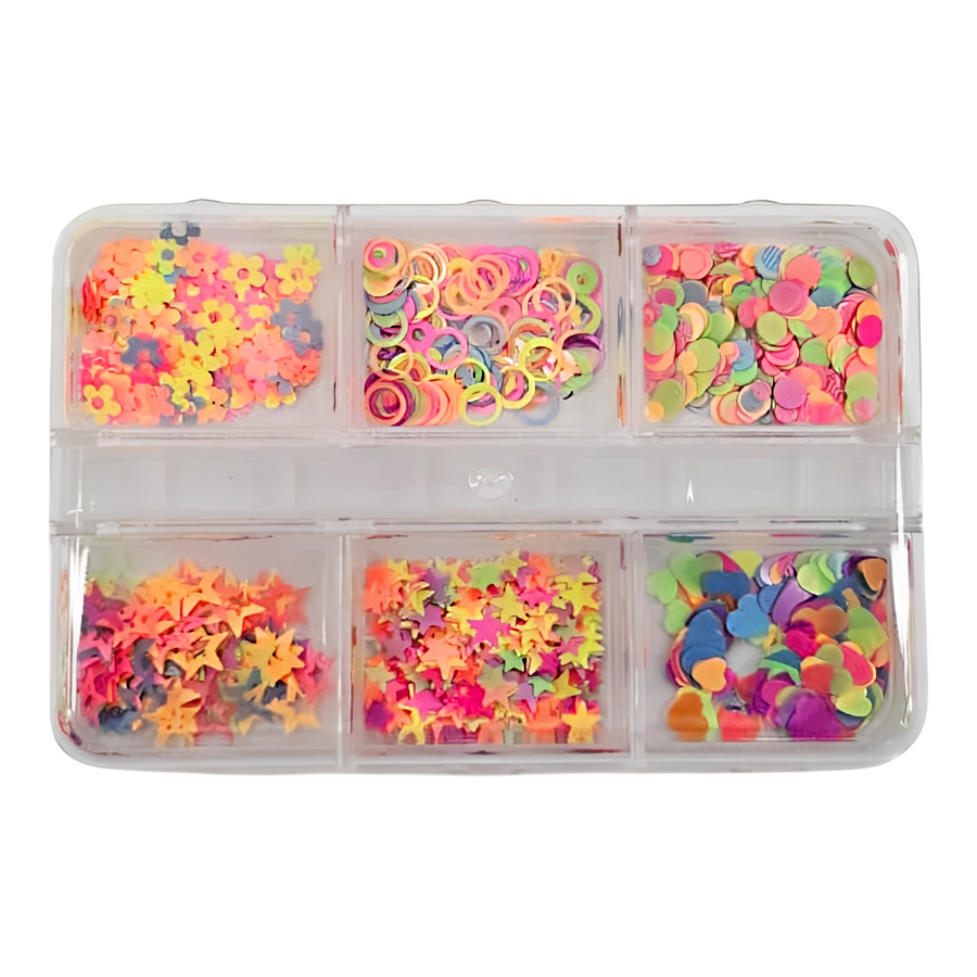 Kit de Decoração para Unhas Confete Neon e Flocos Brilhantes