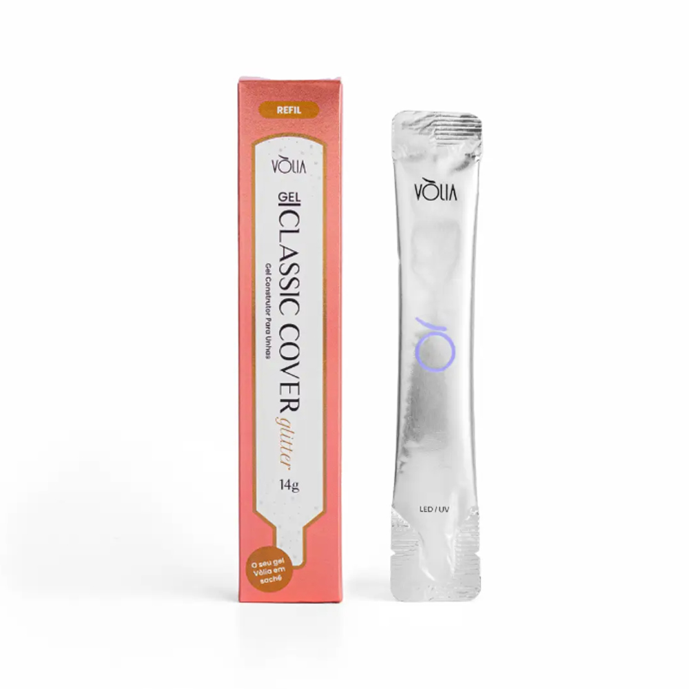 O seu gel Vòlia em sachê, garantindo maior economia para você e maior cuidado com o meio ambiente! O Gel Classic Cover Glitter Vòlia é um gel construtor, versátil e autonivelante para construção de unhas de fibra, molde, tips, dentre outros. Pode ser utilizado em todo o alongamento, inclusive na etapa de pré curvatura e ponto de tensão. Sua formulação oferece uma secagem rápida, proporcionando estruturas de maior rigidez e resultados perfeitos. Possui coloração com alta pigmentação de rosa e leve toque rosé, com lindos brilhos, ideal para efeitos de babyboomer, maquiagem de leito e resultados naturais.